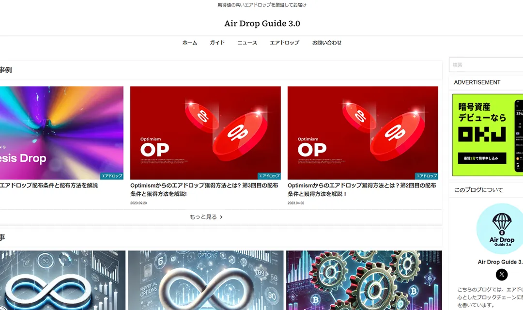 「AirDrop Guide 3.0」は、エアドロップ情報に特化したブログ型メディアです。日本の個人や団体が立ち上げたブロックチェーンプロジェクトを特集し、最新の動向や活用のヒントを発信しています。