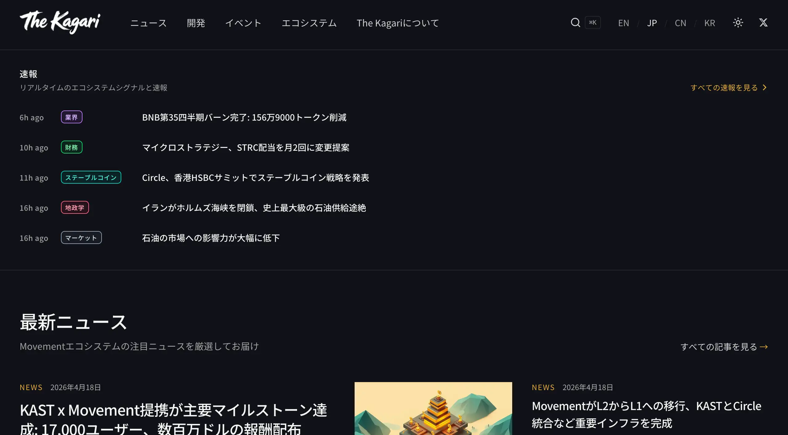 「The Kagari」は、ブロックチェーンエコシステムのニュース、開発情報、イベント、公式リソースを集約する専門メディアです。AIと多言語対応により、国内外のユーザーやビルダーに情報を届けます。