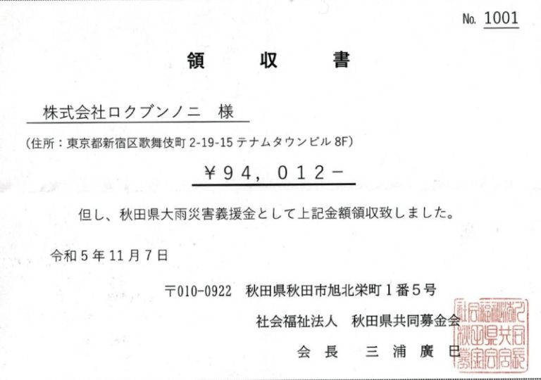 寄付先:秋田県大雨災害義援金